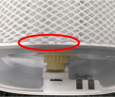 加湿フィルターの両端の網目がドラムに乗り上げていませんか?