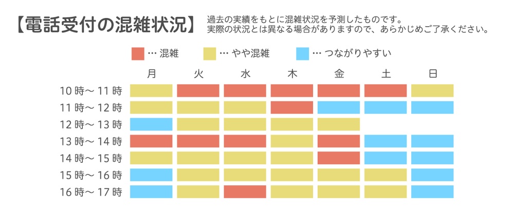 休業の前後は、お問い合わせが集中し、電話が繋がりにくくなる可能性があります。