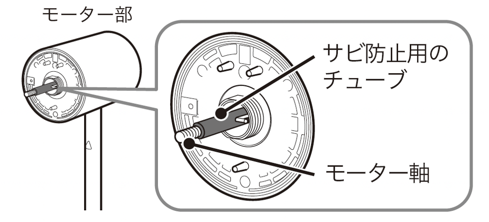 出荷時、モーター部のモーター軸にサビ防止用のチューブが取り付けられています。