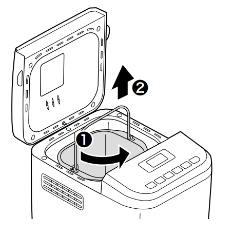 矢印の方向にパンケースを回し、パンケースを引き上げてください。
