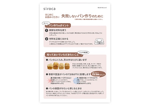 取扱説明書・失敗しないパン作りのために