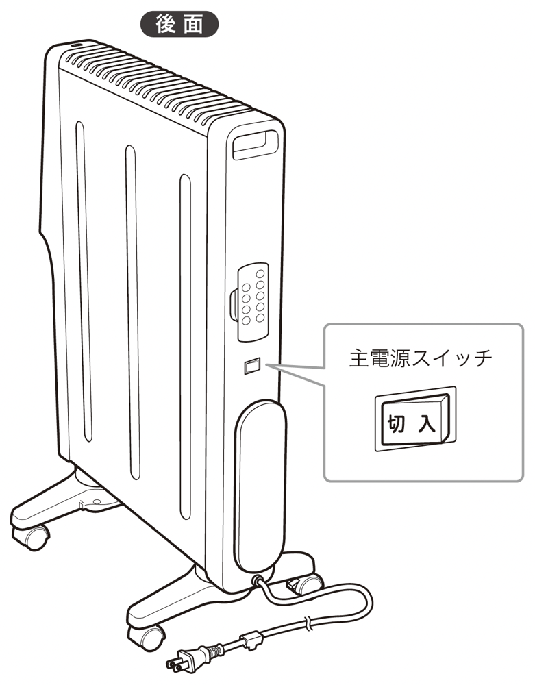 主電源スイッチが《切》になっていませんか。本体後面(電源コードがある側)の主電源スイッ チを《入》にして、電源を入れてください。