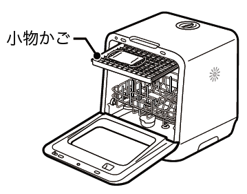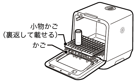 かごに重ねて置いた小物かごのUVライトの真下に除菌するものを置き、UV除菌専用コースは90分(U:90)を選んでください。