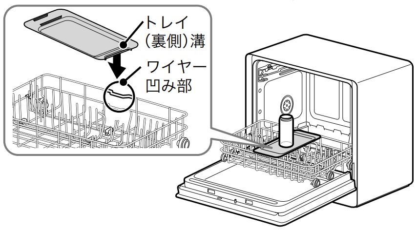下かごのUVライトの真下にUV除菌コース専用トレイを載せ、除菌するものを置きます。UV除菌専用コースは90分(1:30)を選んでください。