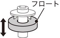 水位感知センサーのフロートが汚れなどで本体にくっついている場合は、フロートが上下に動くように、本体との間を綿棒などで軽くこすって汚れを取り除いてください。