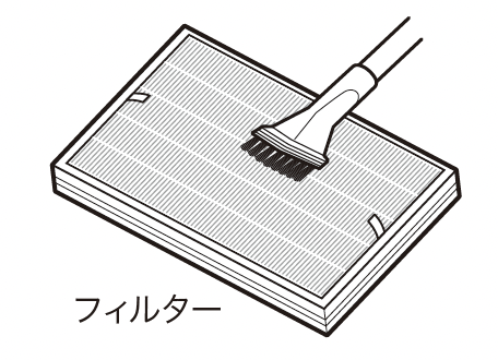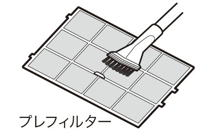2週間に一度を目安にプレフィルターについたほこりを掃除機で取り除いてください。